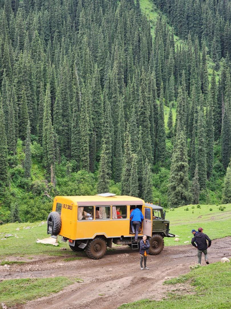 صرف صبحانه زودهنگام (ساعت ۵ صبح)، حرکت به سمت مرز کارکارا ( مرز بین قزاقستان و قرقیزستان) ورود به کشور قزاقستان و حرکت به سمت روستای ساتی (Saty Village) ، صرف ناهار و حرکت به سمت دریاچه کایندی (Kaindy Village)، شب اقامت در خانه های روستایی در ساتی